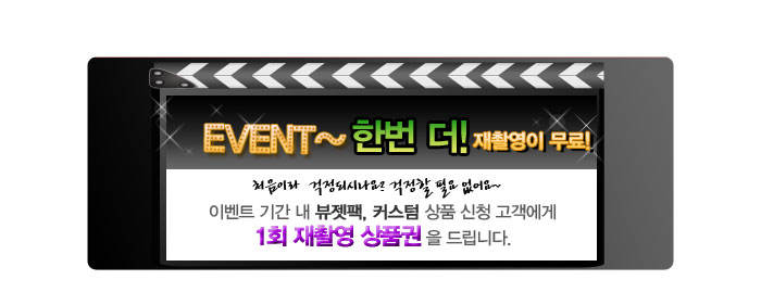ºäÁ¬ ÆÑ, Ä¿½ºÅÒ »óǰÀ» ±¸¸ÅÇϽøé 1ȸ ÀçÃÔ¿µ±ÇÀ» µå¸³´Ï´Ù.